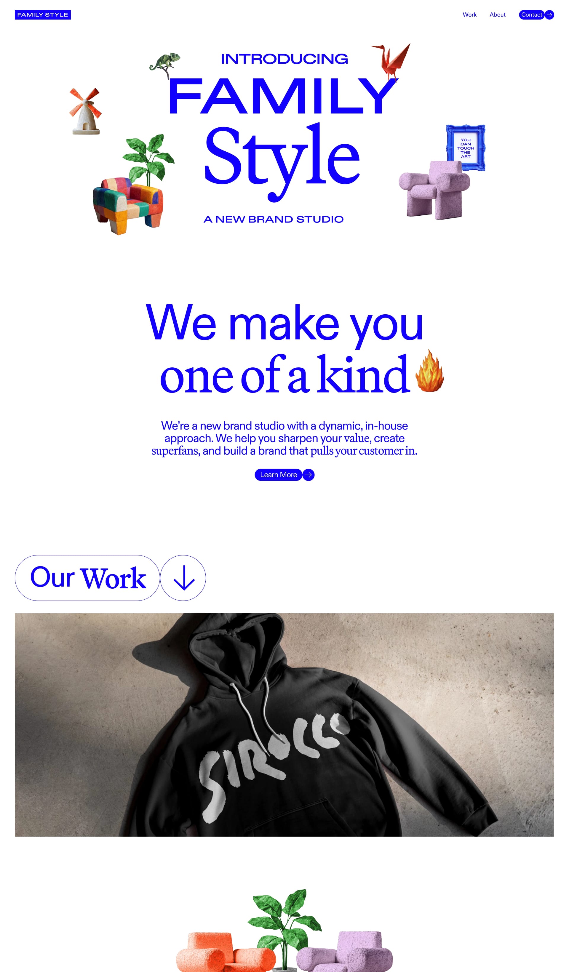 This landing page centers around a vibrant blue color scheme, complemented by playful illustrations and bold typography. It creates a welcoming and energetic feel, while still maintaining a sense of professionalism.